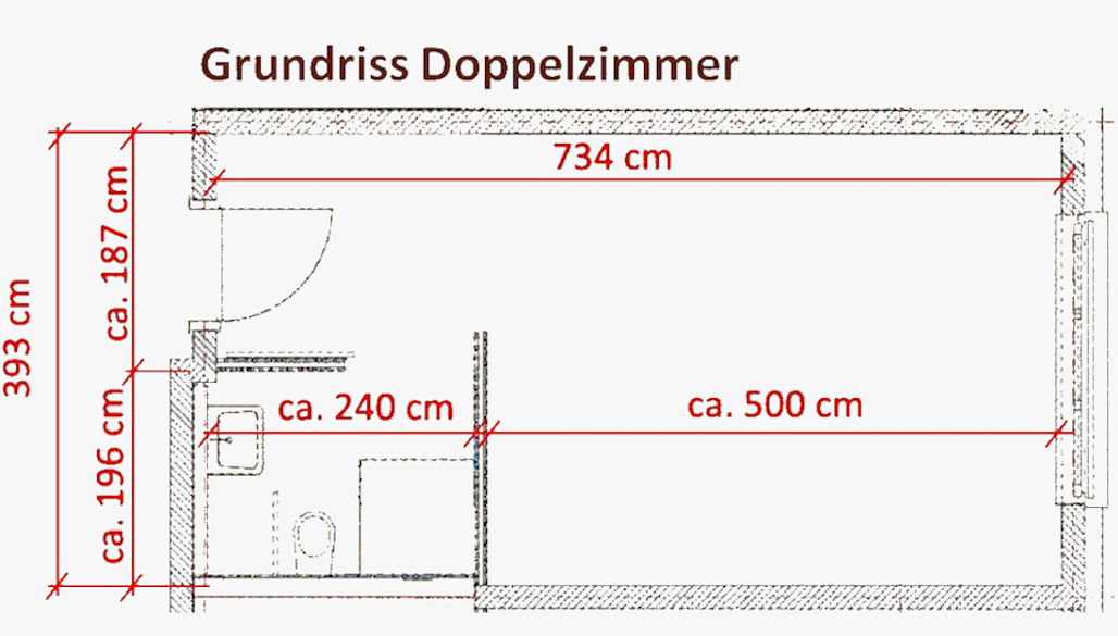 - 36 Einzelzimmer (22,4 m² inkl. Bad)