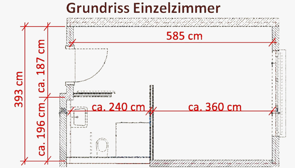 - Moderne Grundausstattung (Pflegebett, Nachttisch, Schrank, Sitzgelegenheit)